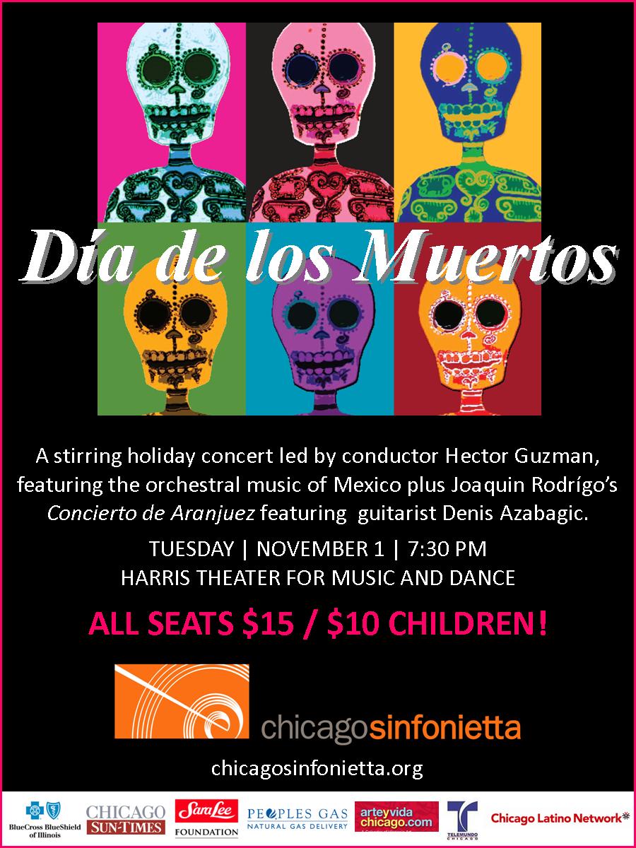 At the request of President Munroe, I am spreading the word regarding opportunities to see the Chicago Sinfonietta on November 1, 5 and 7. Student tickets are $10. Personally, I have always loved events celebrating Dia de los Muertos. Flyers for both performances are below.